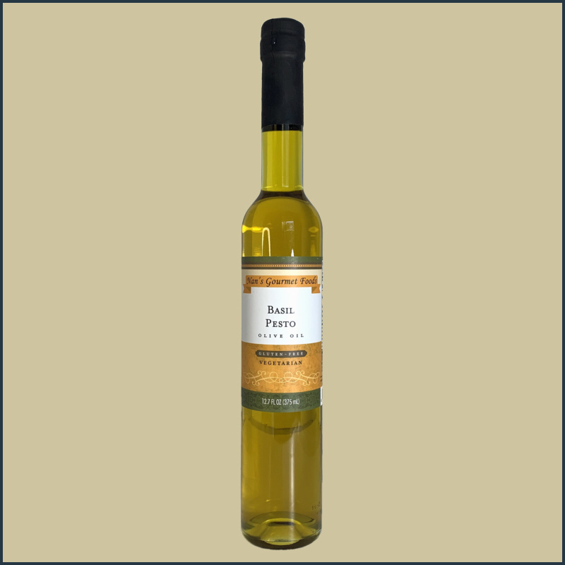 Our Basil Pesto Olive Oil is a versatile and endearingly popular oil. Buttery extra virgin olive oil is infused with tangy Parmesan cheese, sweet fresh basil and a punch of garlic creating a flavorful and delightful condiment for the home cook.
